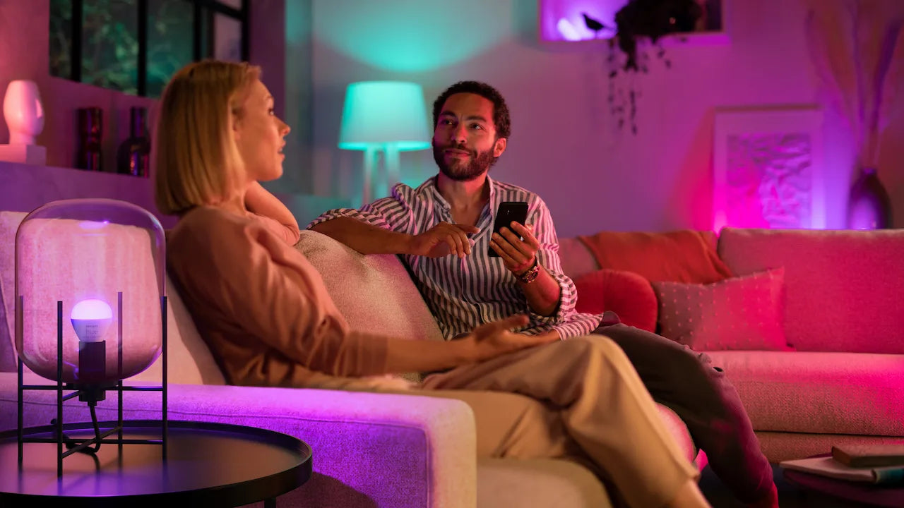 På blot et øjeblik kan du altså skifte arbejdsbelysningen over bordet ud med blødt, dæmpet lys til eftermiddagshyggen. Du kan sætte en fantastisk stemning med de farverige belysningsscener i scenegalleriet, skabe den helt rette atmosfære til middagen med Stearinlys-effekten, og få den perfekte lyssætning i hjemmebiografen. Alt sammen med kun din telefon ved hånden.
