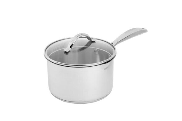 Scanpan gryde i rustfrit stål med glaslåg – 2,5 liter, 18 cm