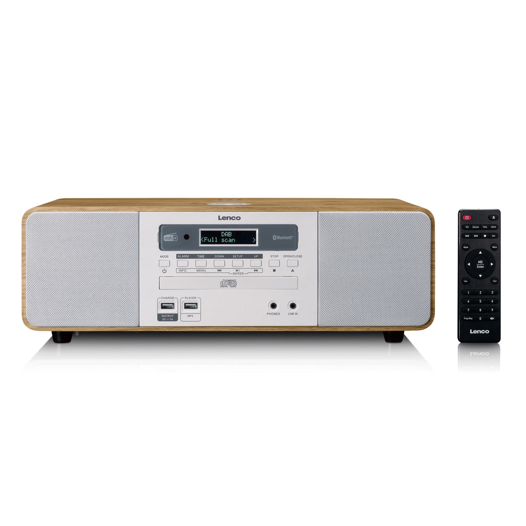 Lenco - Stereo DAB+/FM-radio, CD, 2 USB, Bluetooth®, QI og fjernbetjening Træ/hvid - DAR-251WDWH